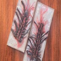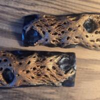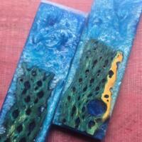 Resin knife scales made from a silicone mold made from a 3D printed pattern.
