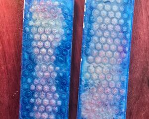 blue honeycombs in pearl white light red and light blue resin...