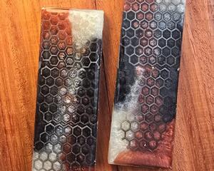 Thin red honeycomb in pearl black resin knife scale