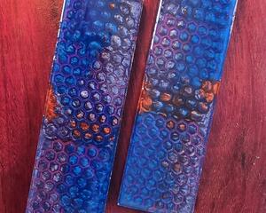pink honeycomb in blue red and metallic purple resin knife sc...